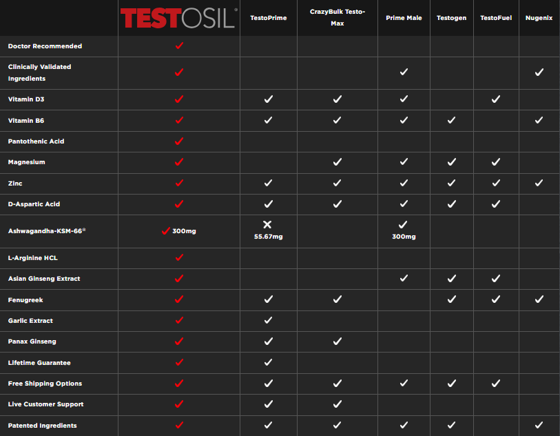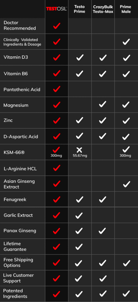 Unlike “watered-down” formulas containing ONLY 1, 2 or 3 ingredients… Testosil® is made with ELEVEN high-quality testosterone-boosting extracts!