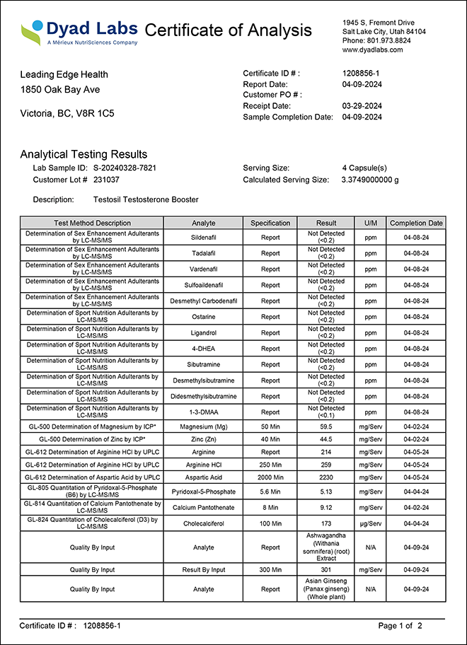 an essential combination of Zinc, Magnesium and B6 that are mission-critical for keeping your testosterone levels optimal!